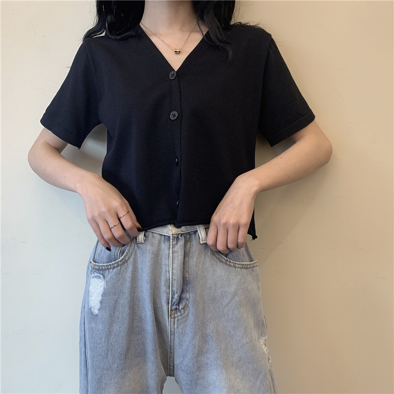 半小時前氣質v領薄款打底針織衫,2020夏季新款女裝短款開衫上衣 - 【買一送三】任選4件,僅需NT$1198